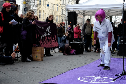 Wir fordern eine bedarfsgerechte Finanzierung und Umstrukturierung der Gesundheitsversorgung, ausgerichtet an den tatsächlichen Bedürfnissen und der Selbstbestimmtheit von Patient*innen und Beschäftigten. Außerdem fordern wir ein generelles Profitverbot für das Gesundheitssystem sowie einen Zugang zur Gesundheitsversorgung für alle Menschen! Wir treten für Verbesserungen in der bezahlten und unbezahlten Sorgearbeit ein.  Gesundheit darf keine Ware sein, Kranke kein Mittel der Gewinnmaximierung. Pflegekräfte dürfen kein Kostenfaktor und Pflege kein Grund für Altersarmut sein, Angehörige oder Freund*innen sowie Entrechtete und Illegalisierte nicht Lückenbüßer*innen eines maroden Systems. Wir fordern Selbstbestimmung und Bedarfsorientierung in der Pflege- und Sorgearbeit  - Für eine feministische Pflege, die uns alle angeht!